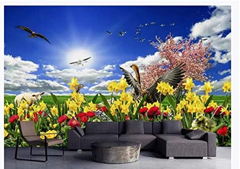 Téléchargement gratuit Yaxiaa 3d Papier Peint Ciel Bleu Nuages Blancs Herbe Fleurs