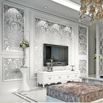 Avoir 3d Argent Victorien Sticker Mural Damasse En Relief Rouleaux