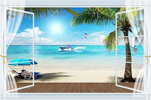 Avoir Faux 3d Vue De La Fenetre Sticker Mural Plage 16 Style Bord De