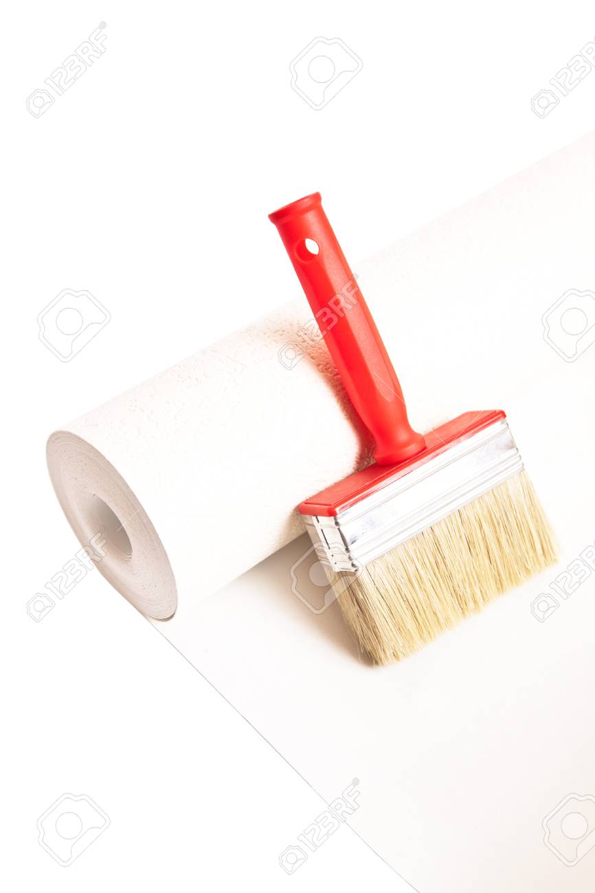 Scarica Gratis Pinceau Et Rouleau De Papier Peint Isole Sur Fond Blanc Banque D