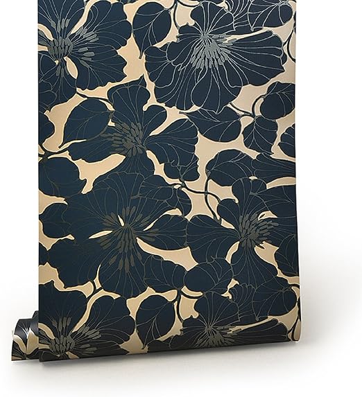 Avoir Waymx Bleu Noir Fleurs Non Tisse Confortable Papier Peint Pour Les