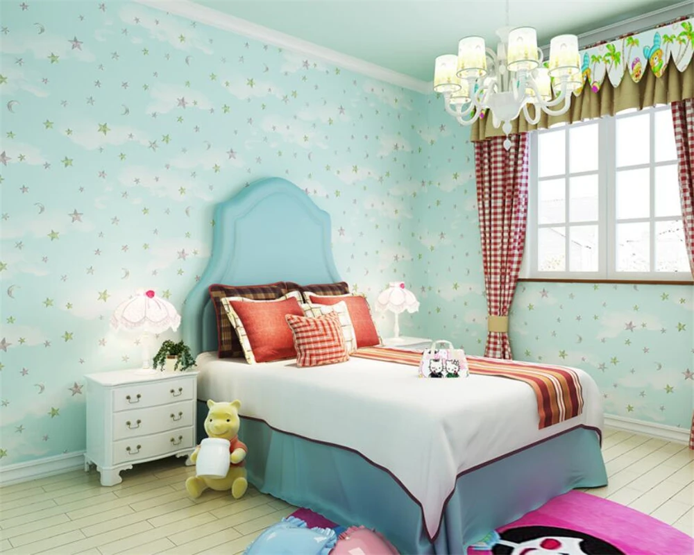 Scarica Gratis Beibehang Profond En Relief Rose Bleu Ciel Blanc Nuages Etoiles
