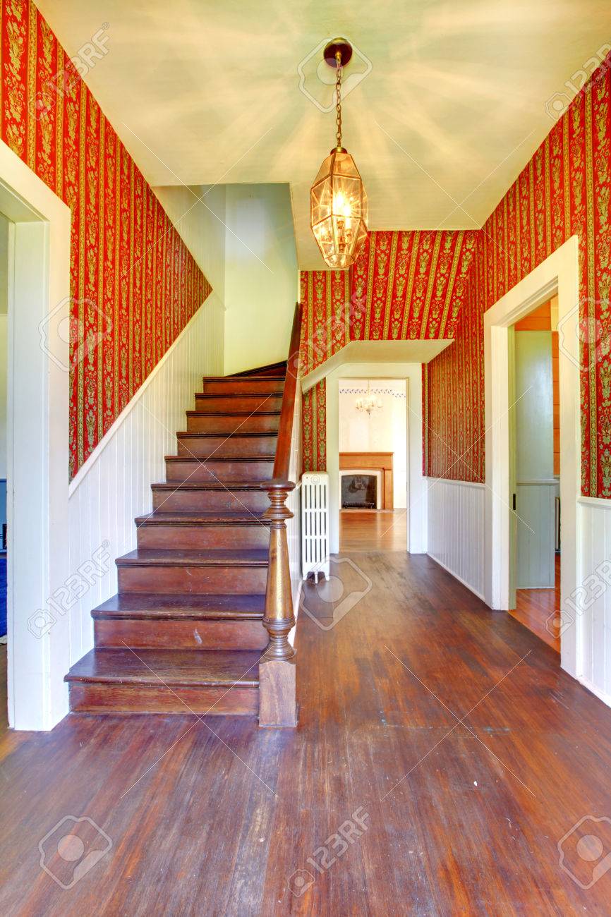 Télécharger gratuitement Image De Hall D Entree Avec Escalier En Bois Papier Peint Rouge