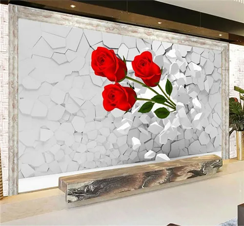 Scarica Gratis Modern 3d Red Rose Stone Wallpaper For Living Room Floral Non