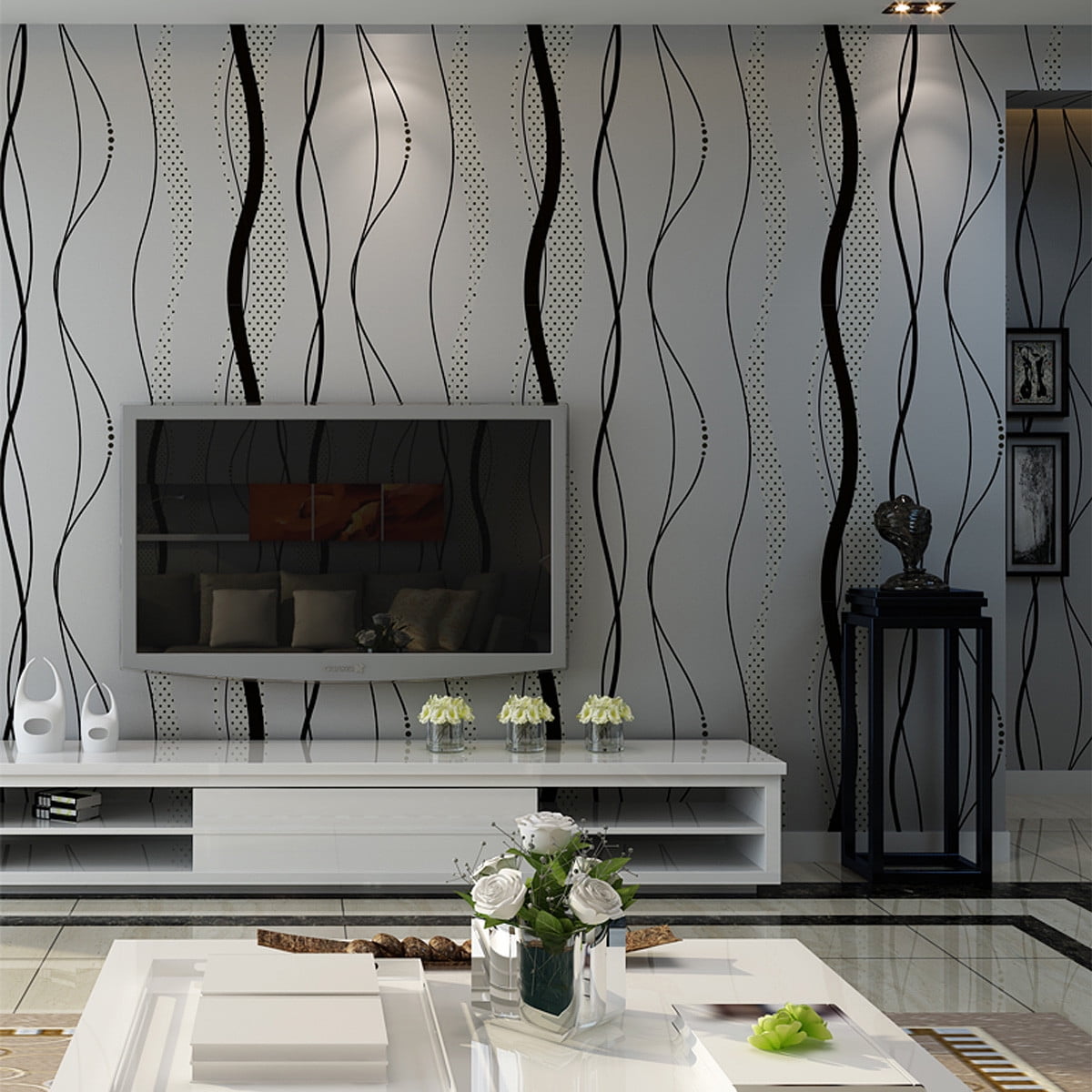 Télécharger gratuitement 1 7ftx33ft 3d Modern Curve Stripe Non Woven Wallpaper Rolls Tv