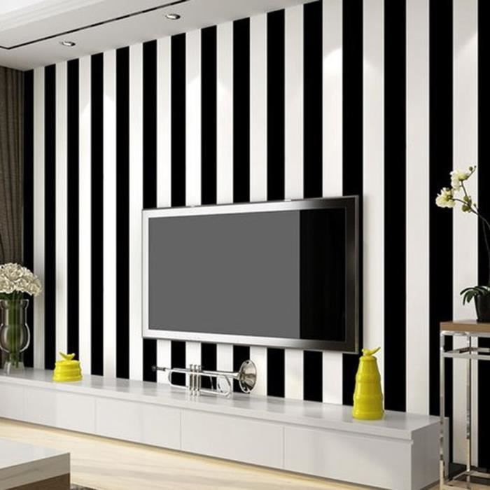 Gratuit Papier Peint A Rayures 0 53x10m Noir Blanc Salon Non Tisse